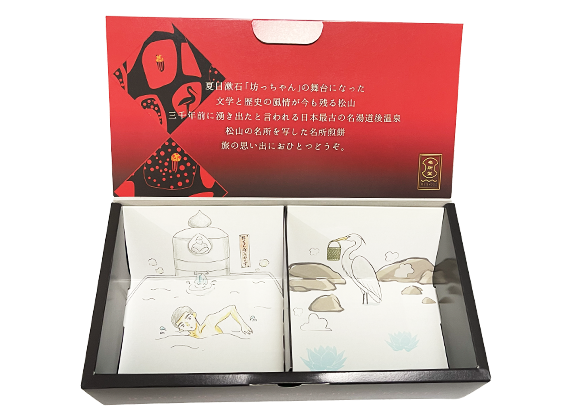 松山の名所を写した名所煎餅を旅の思い出におひとつどうぞ。